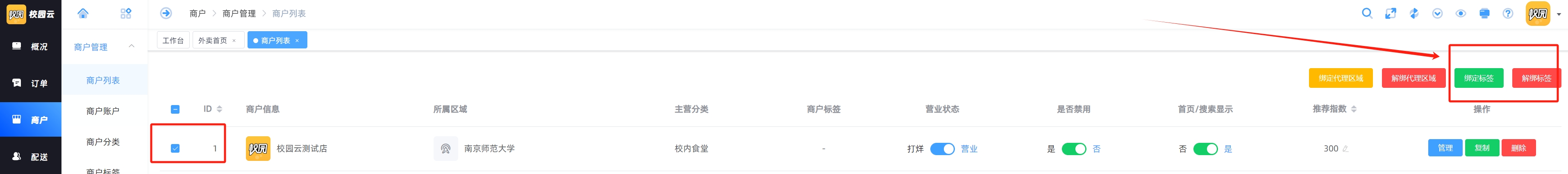 - 商户标签是代理的商户分类,平台配置好的是商户的入驻类目