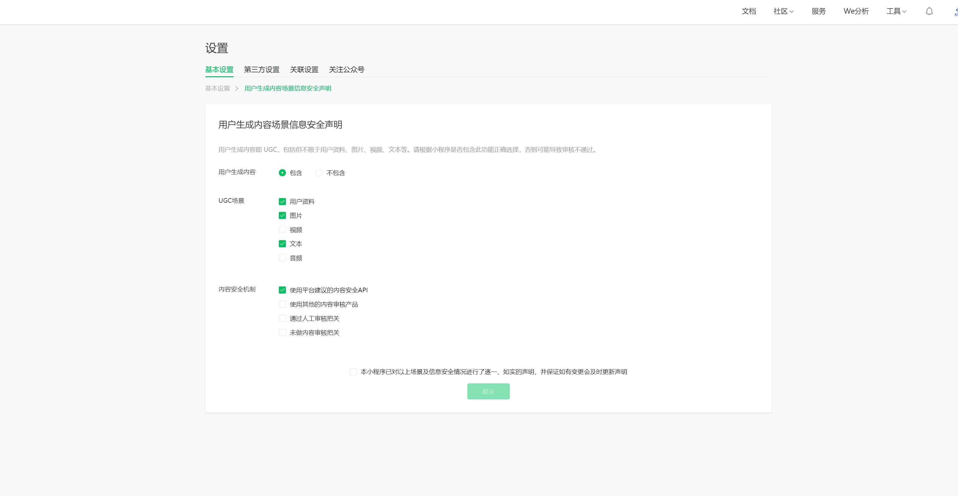# 配置小程序用户生成内容场景声明