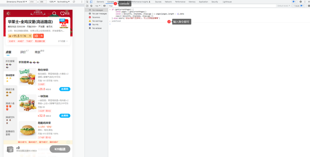 - 控制台console内输入:暂不支持多规格